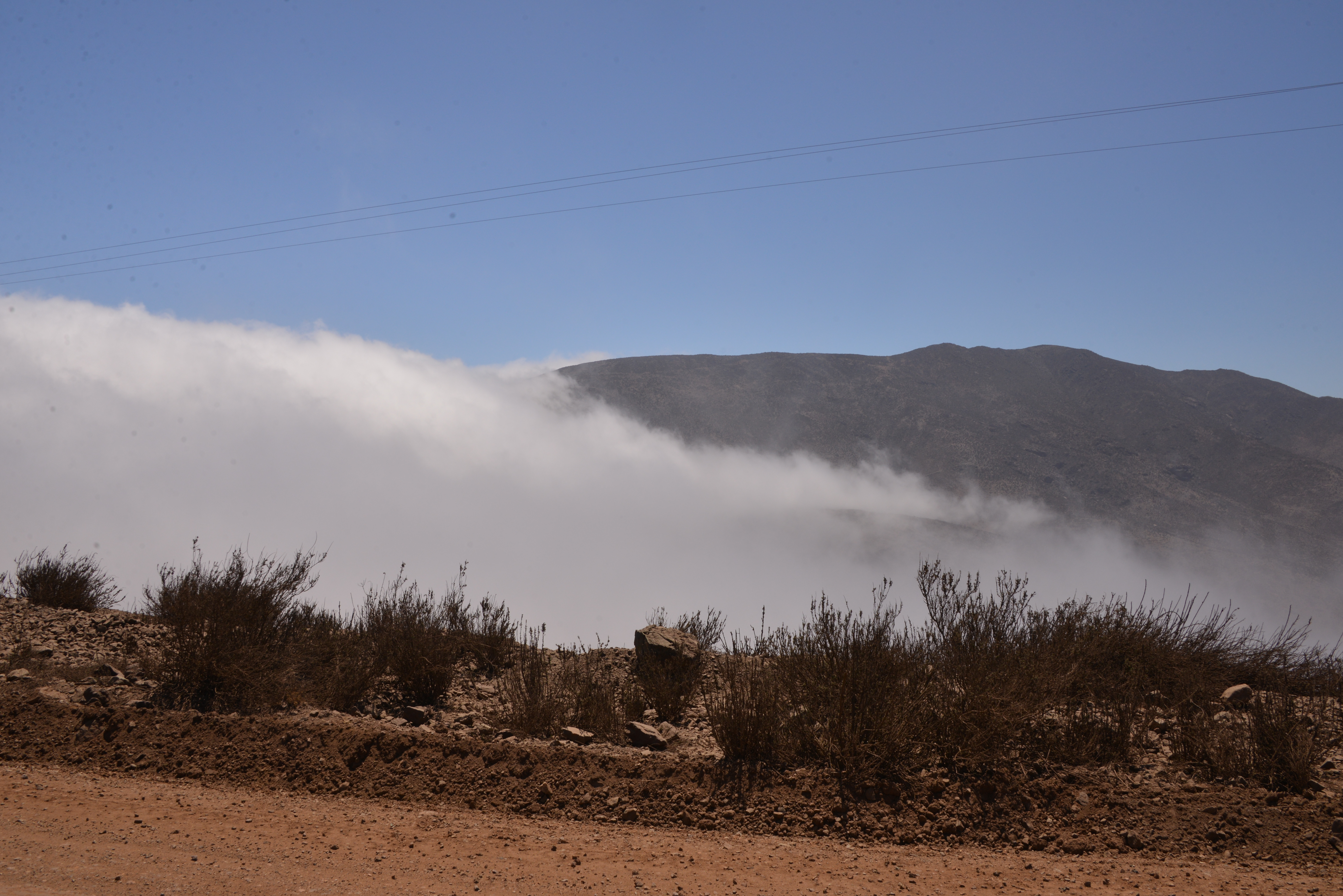 We stopped again a little farther along the road (S2889) as we had now reached the point where the road was about to disappear into the clouds. I’m still collecting images and movie clips for a talk on Fog, so the scenes here were magnificent. There was also an Eriosyce (Horridocactus) sp here, in flower, and different from ‘ball of spines’ encountered earlier. We made several more stops (all still filed under S2889) to film the fog and arrived safely back on Ruta 5.