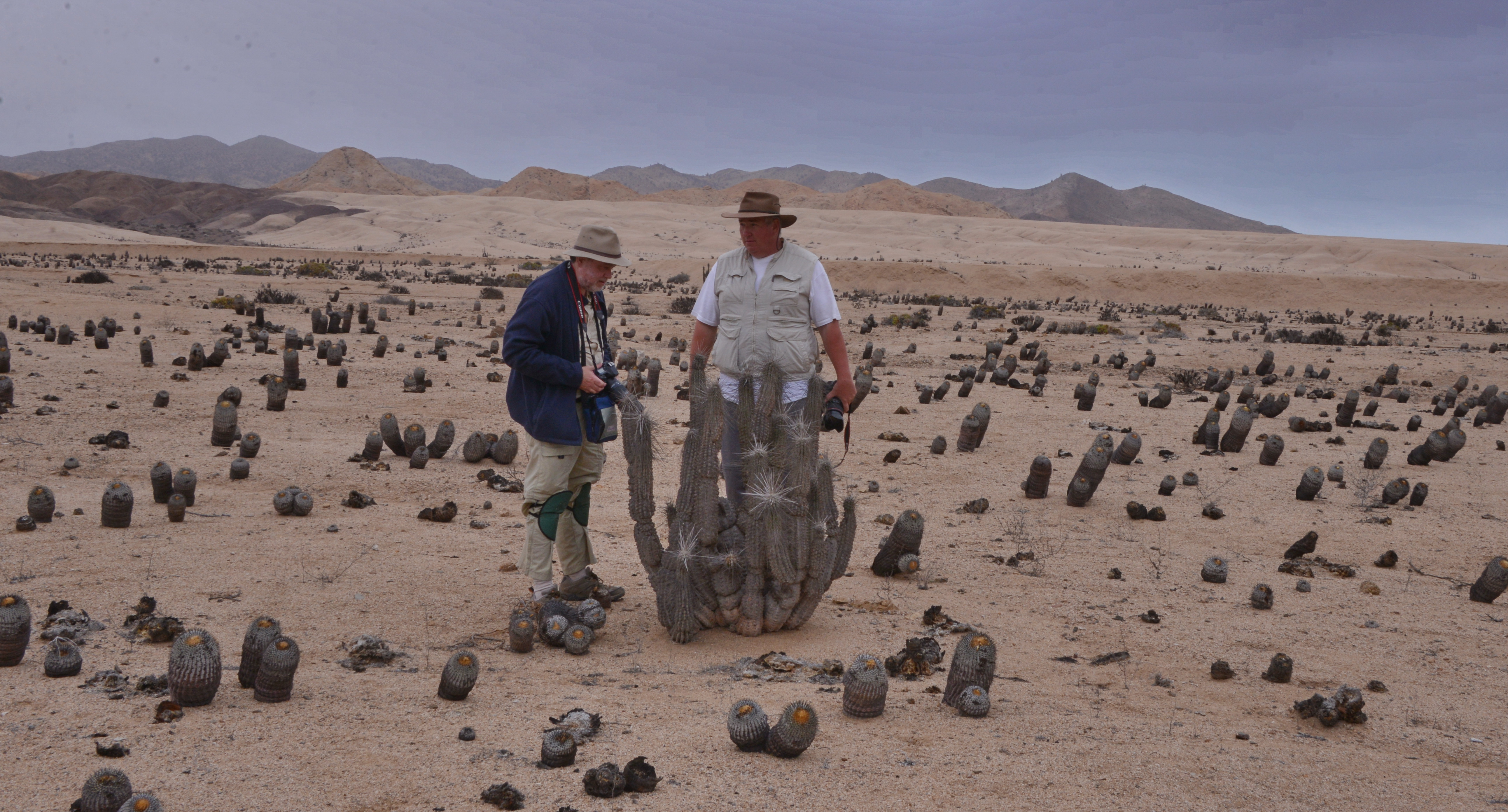 Next we set off to a section of beach below Las Lomitas that we had christened ‘Puma Bay’ after an earlier visit when we had camped here. Two favourite plants, one a clump with both C. longistaminea and C. grandiflora growing as one and another where Marlon Machado and I had found a large crested head at the base of the plant when we had first seen it in 2001 were still there. By 2004 I was sad to find that the crested head had been chopped off. The large plant that remains still bears the scars. Both plants looked to be struggling – too dry for too long?