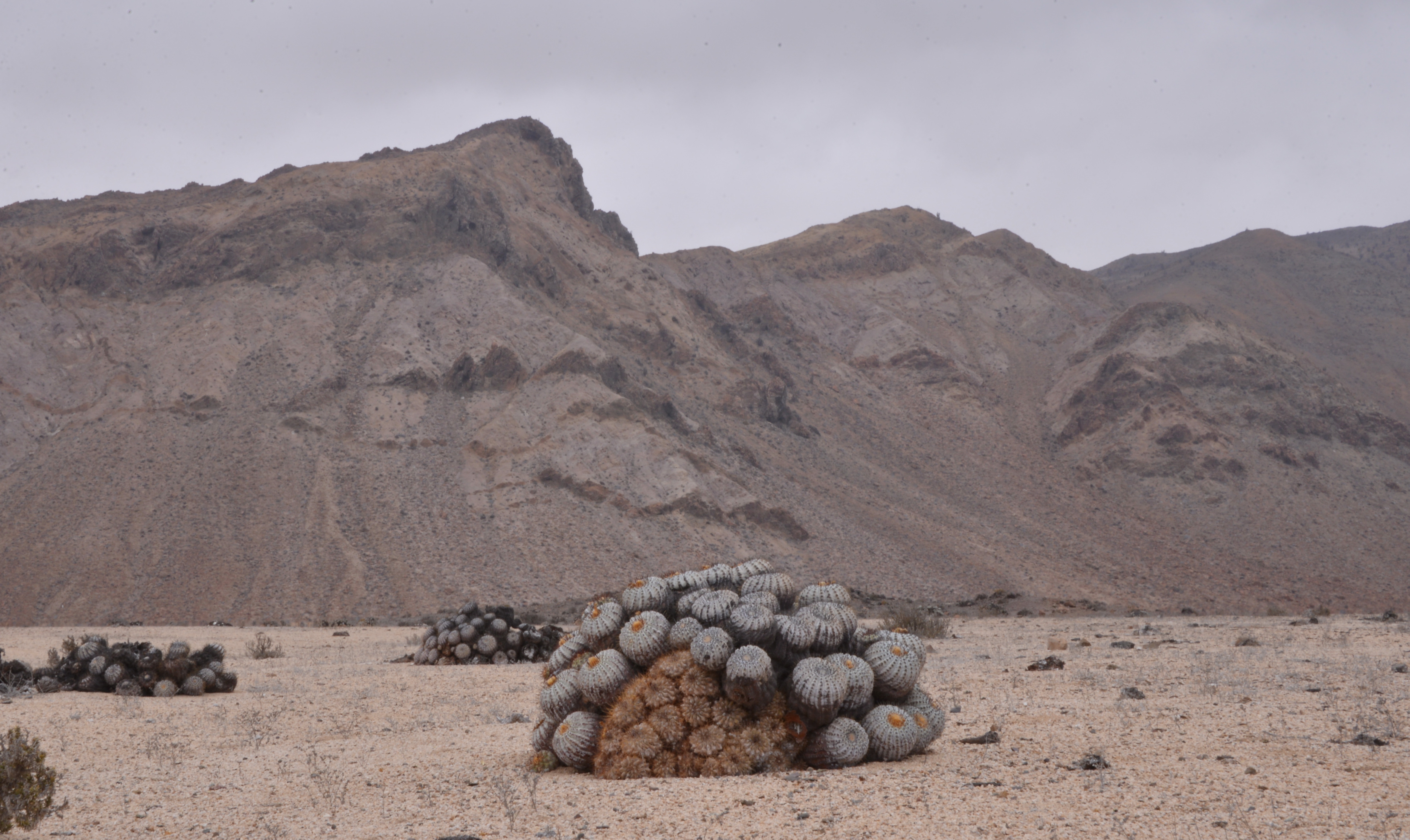 First on today’s agenda was a stop (S2912) for a huge area covered in Copiapoa cinerea ssp column-alba off the Taltal-Cifuncho coast road. The plants here were the size of seals and the felt disc at the apex had grown since I visited C. column-alba in the region with Angie in October – life was returning to cactus country.