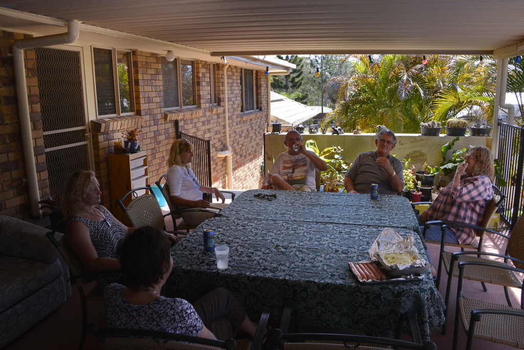 The New Zealand contingent waiting patiently while out of sight John is firing up the BBQ and Ruth is preparing salad in the kitchen