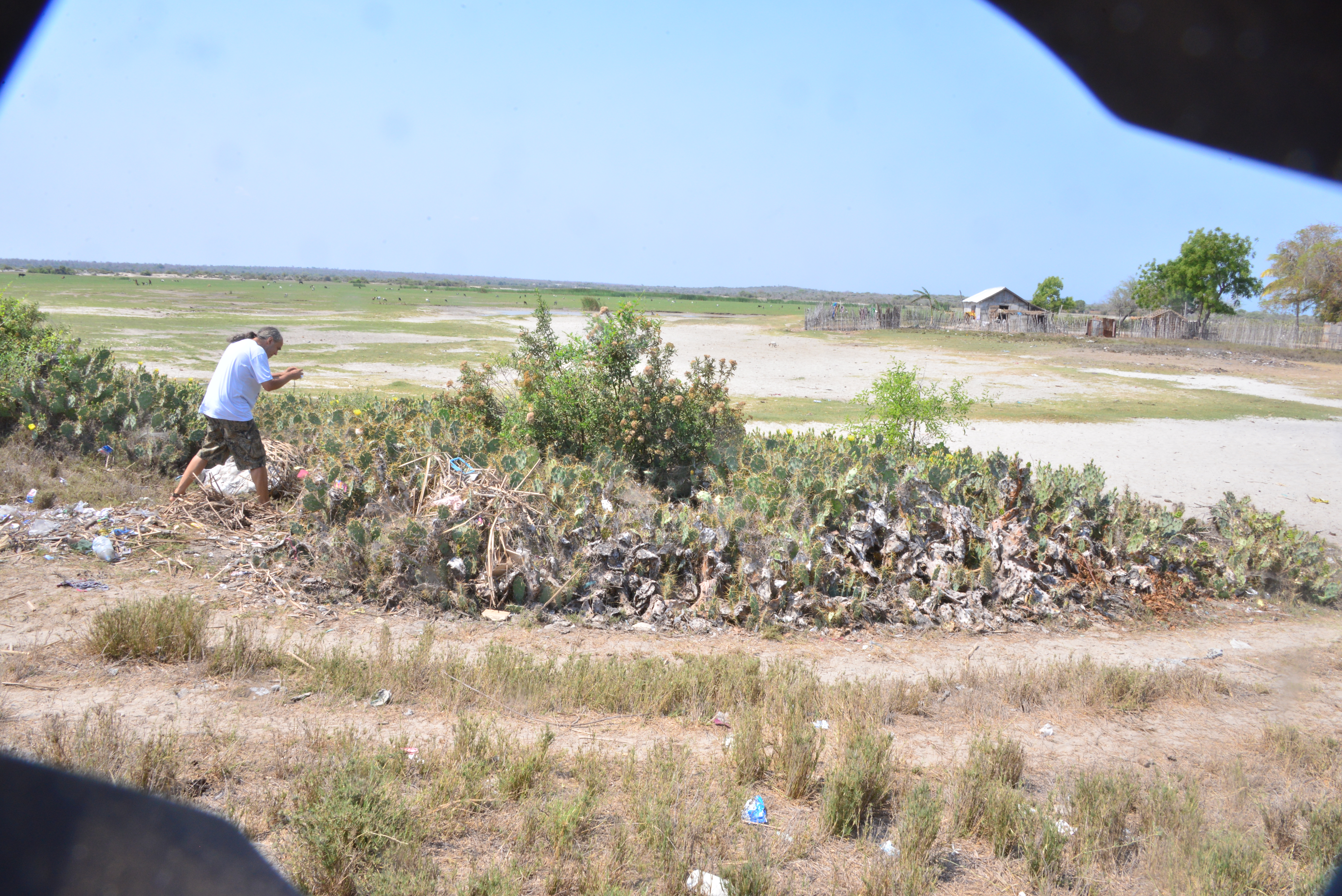 Having seen the local flora and fauna in the Arboretum yesterday, today Christophe wanted to take us to St. Augustin and see Aloe descoignyi var augustina in nature. We left the comfort of the hard top and were back to bouncing along dirt tracks again, on a scenic coast track. We passed a sea-cucumber farm; nothing like a mass of greenhouses as found in het Westland in the Netherlands, but partitioned off sections of the bay in the Indian Ocean. Sea cucumbers are not plants but are marine animals with a leathery skin and an elongated body that are farmed here for export to China where they are sold for consumption. I was surprised to learn that there are some 1,700 different species!