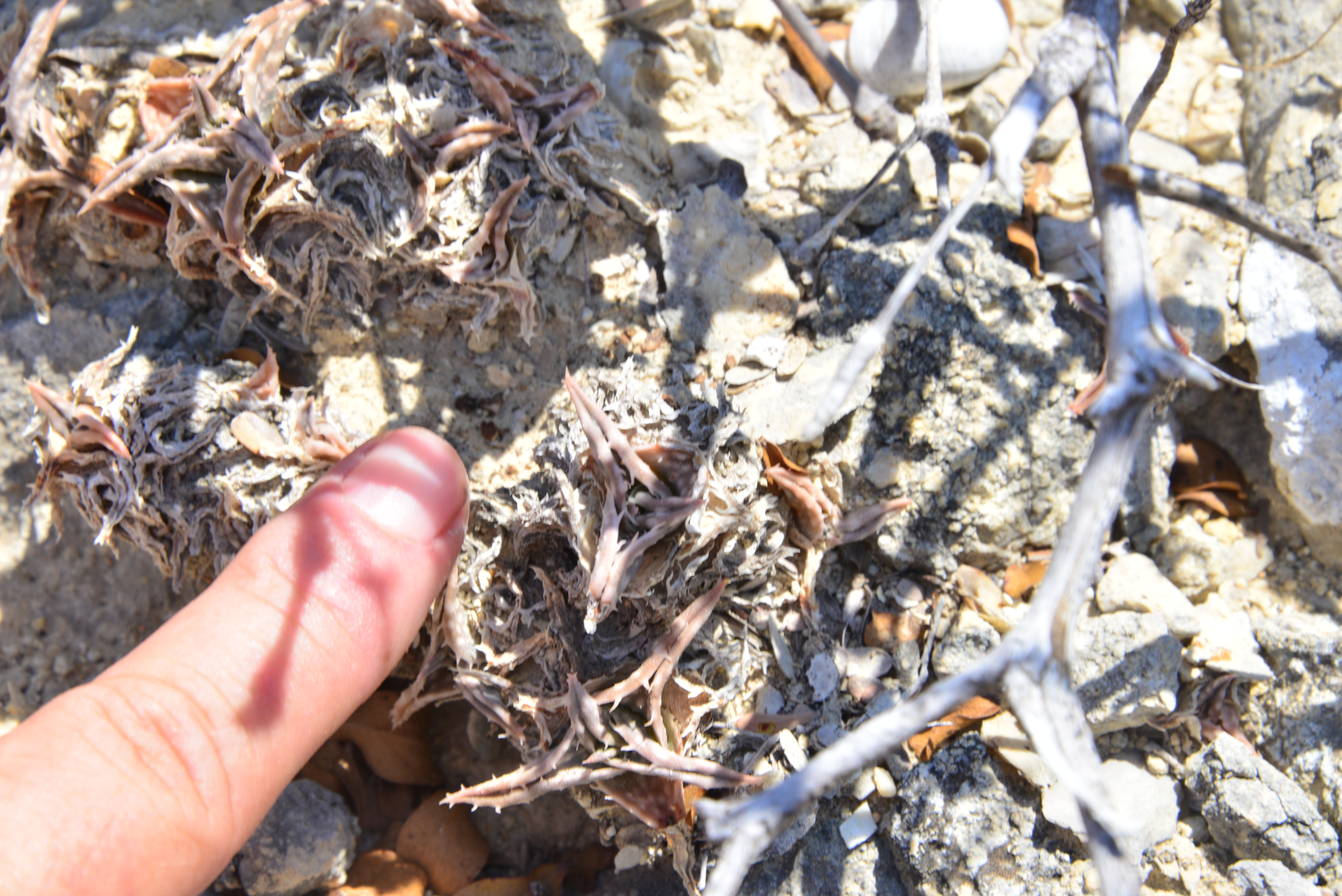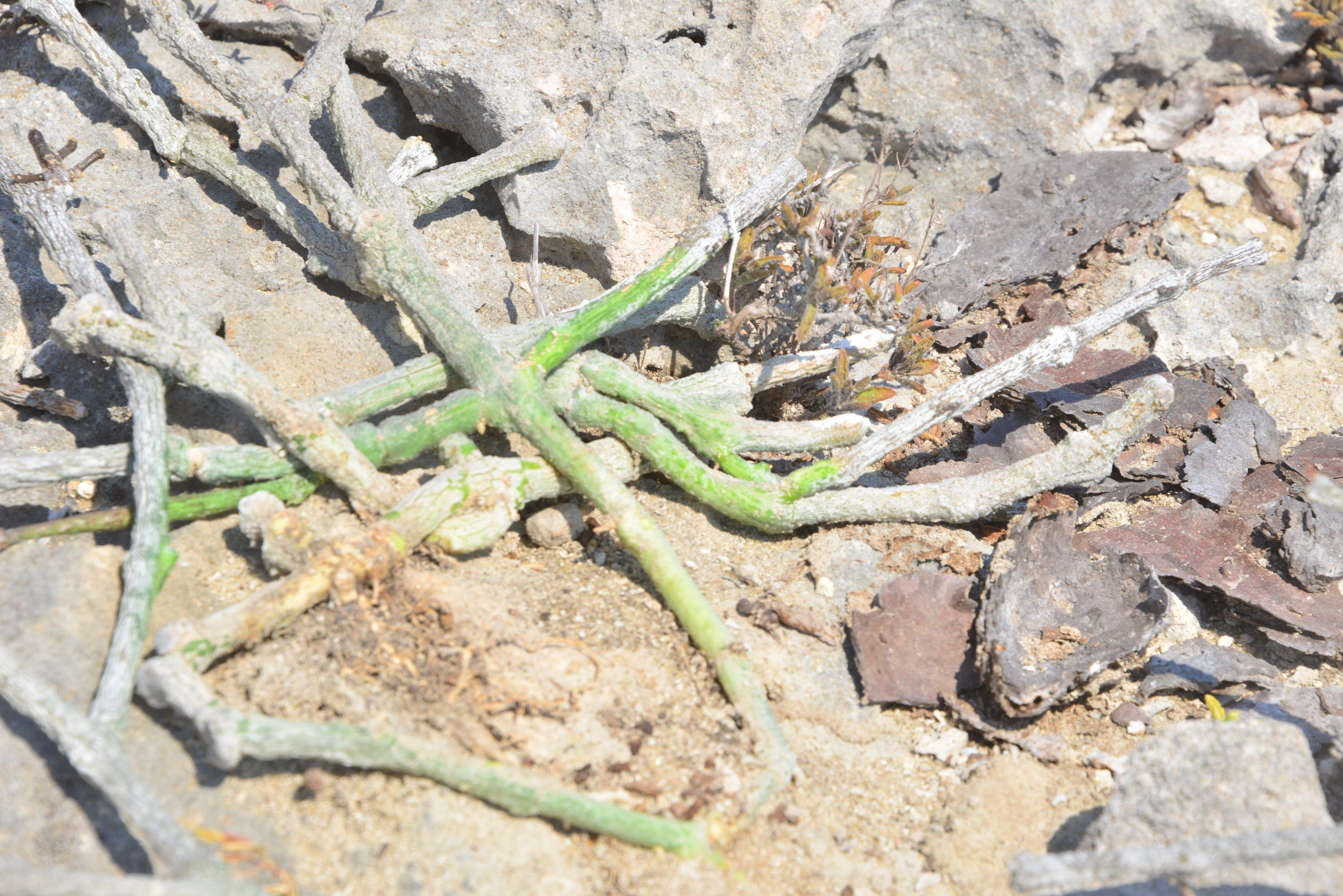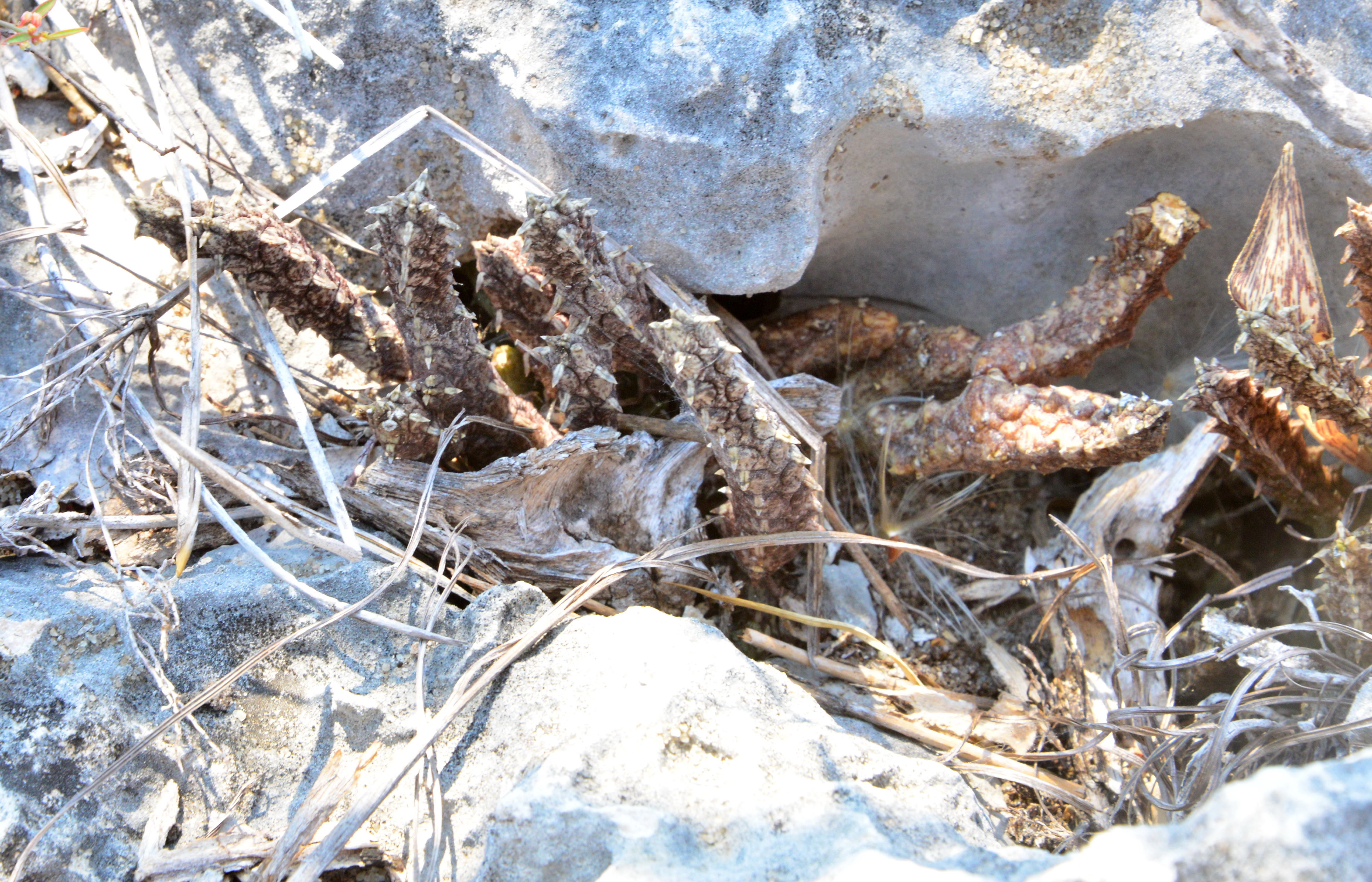 We searched in vain for the small Euphorbia that should have been found on the other side of the path. Christophe and John went on to search some more on the steep rock side opposite our hill, but John reported finding only a few small plants in this harsh environment.