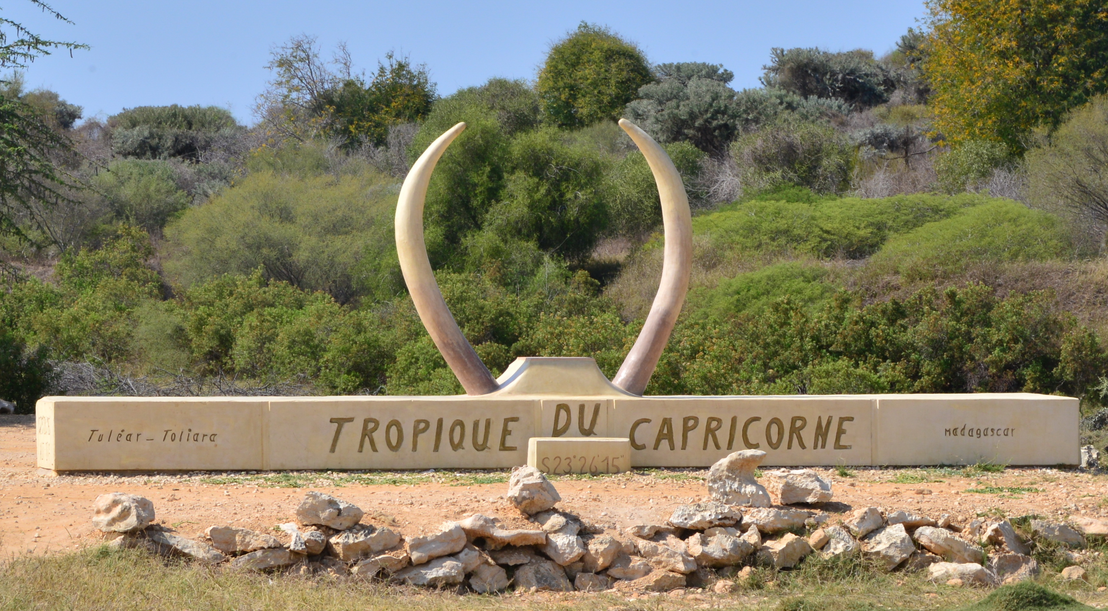 The track went into the Protected Area of Tsinjoriake and before too long we stopped for pictures at the monument marking our passing of the Tropic of Capricorne. Nadia waskeen to have her picture taken here as she was born under the star sign of Capricorne.