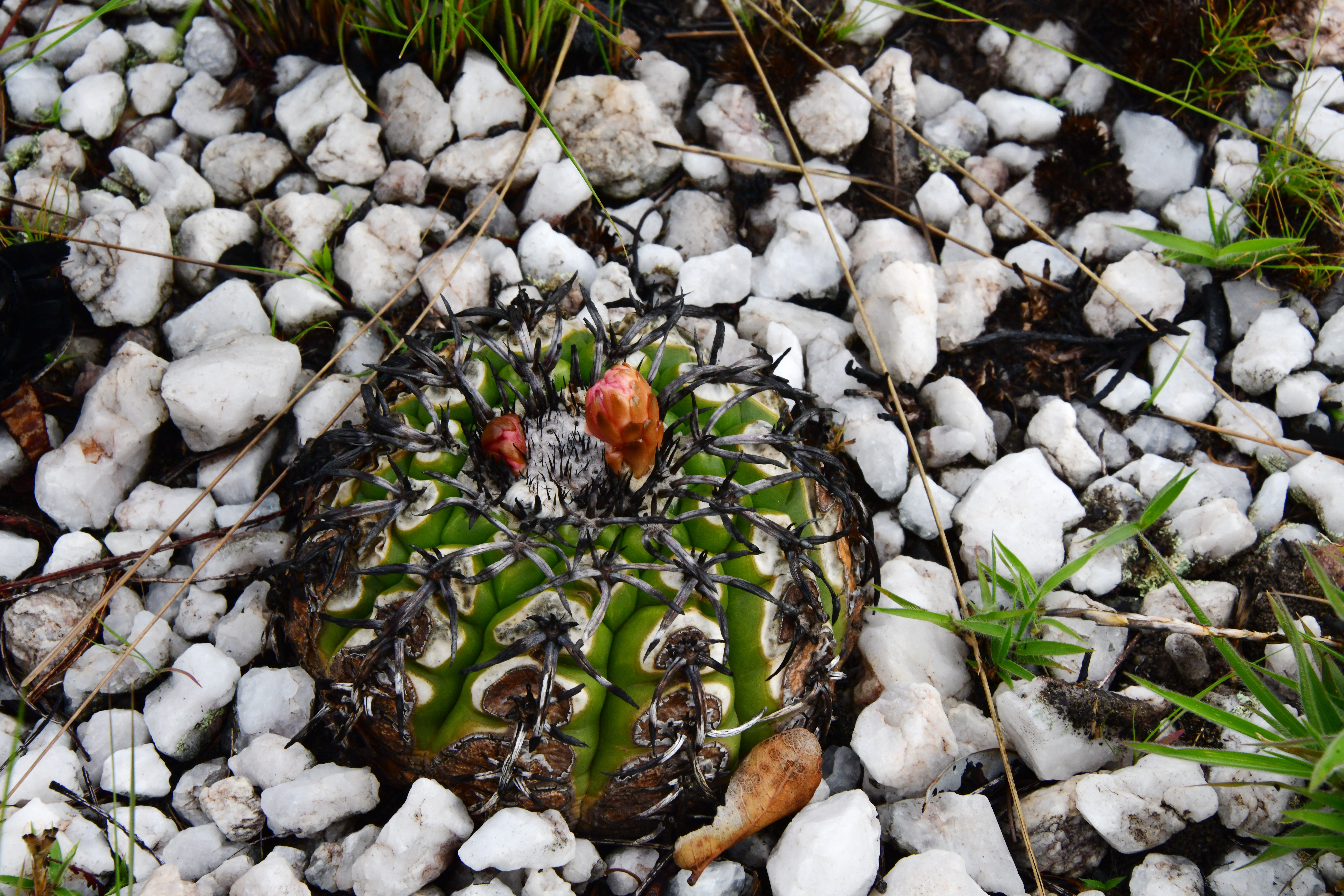 Our first stop (S3670) was for a Discocactus population that had survived a flash fire that had damaged the epidermis but had not killed the plants. In fact, the plant was in bud, ready to flower tonight.