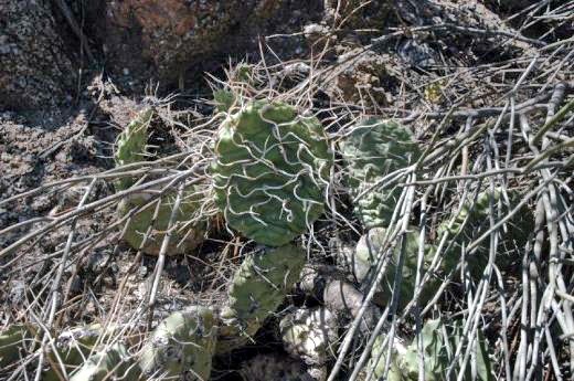 We had travelled quite a bit (two and a half hours) farther north, when we stopped near Laguna Volcan (S463) for lunch. Once again, we were able to add a few names to the list of taxa seen on this trip: Austrocylindropuntia vestita and Parodia stuemeri (syn. P. tilcarensis) — poking out from clumps of Abromeitiella brevifolia; growing alongside Cleistocactus hyalacantha seen earlier.