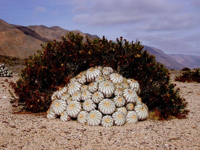 At this spot, this time S2079, it took a little while to find Maihueniopsis clavarioides. It had been very dry here, while in 2008 we saw them in the middle of a thunderstorm, soaking wet. Some plants were in bud and looked as though they may open later. We also found Eriosyce (Pyrrhocactus) strausiana, in flower, but again very dehydrated. Rains should start by the end of the month, but are unreliable in timing and volume. We continued to find Maihueniopsis glomerata here, with some plants still in flower, but fruits indicating that we had missed the peak of flowering. The strategy seems to be to flower before the summer rains begin, so that ripe seed will be available to germinate and establish itself before the next dry spell.