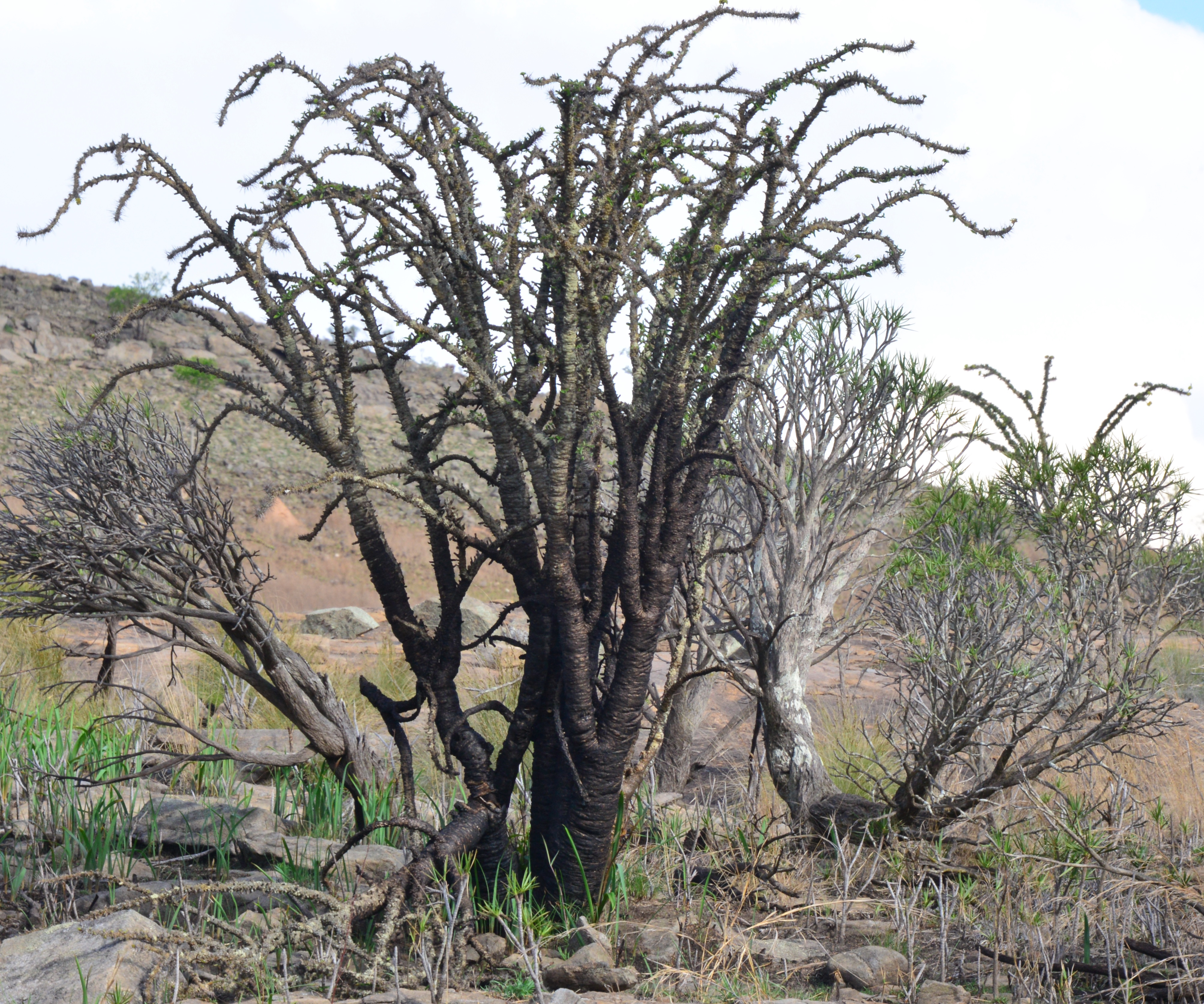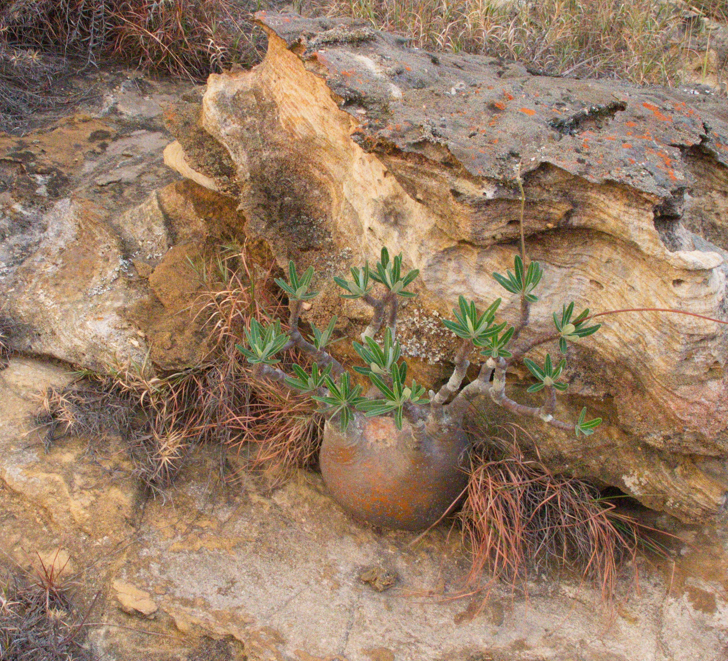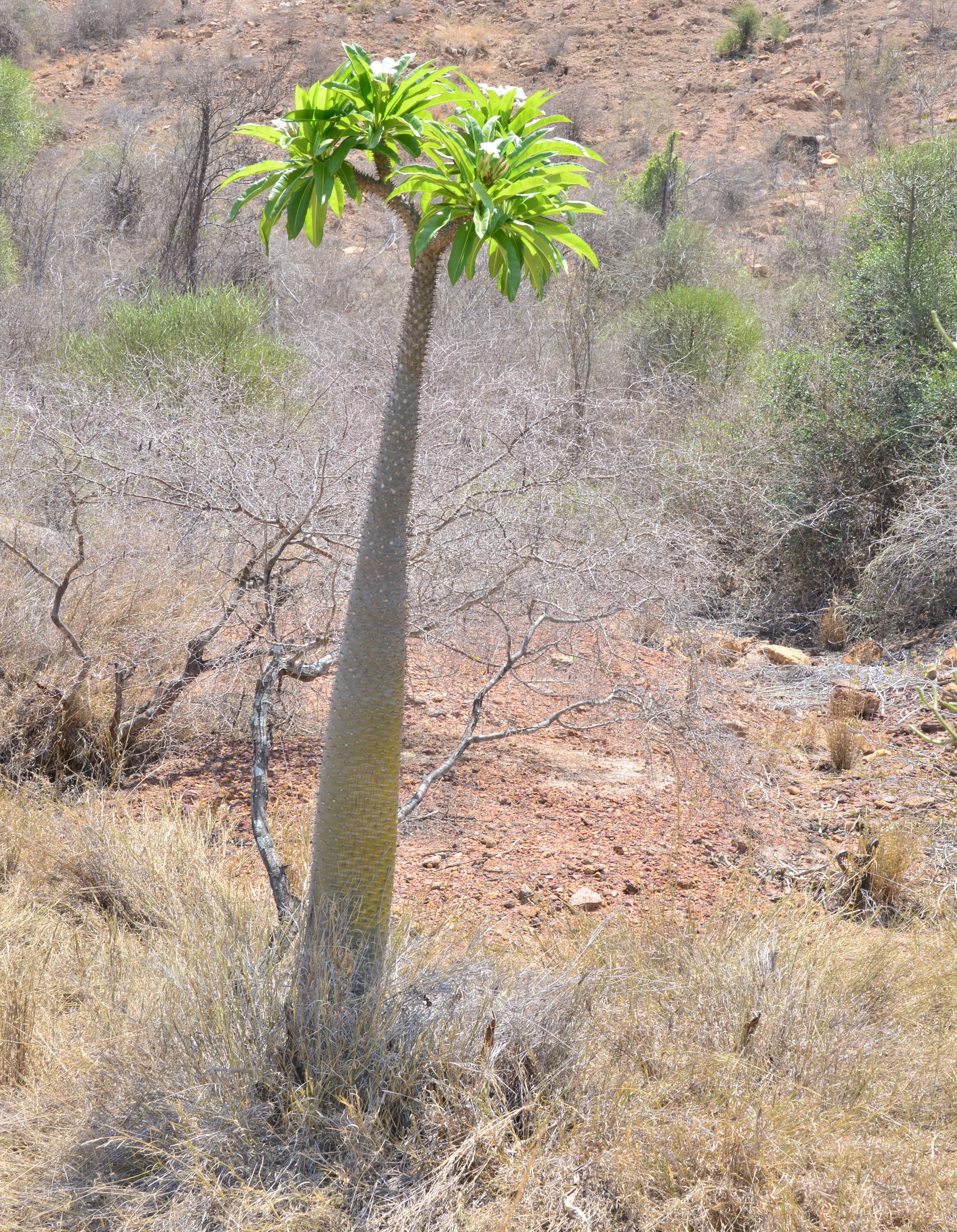 John and I were sent away to let Nadia and Christophe set up the tents. I followed Jean who was collecting wood for tonight’s campfire. Where are the Eulychnia when you need them? Oh yes, in Chile. He pointed out a small area with shrubs and told me to look for Pachypodium brevicaule. Easy to find! There must have been some twenty plants, partly buried, unlike the plants earlier on the trip found on Mt Ibite that were mostly growing fully exposed above ground.