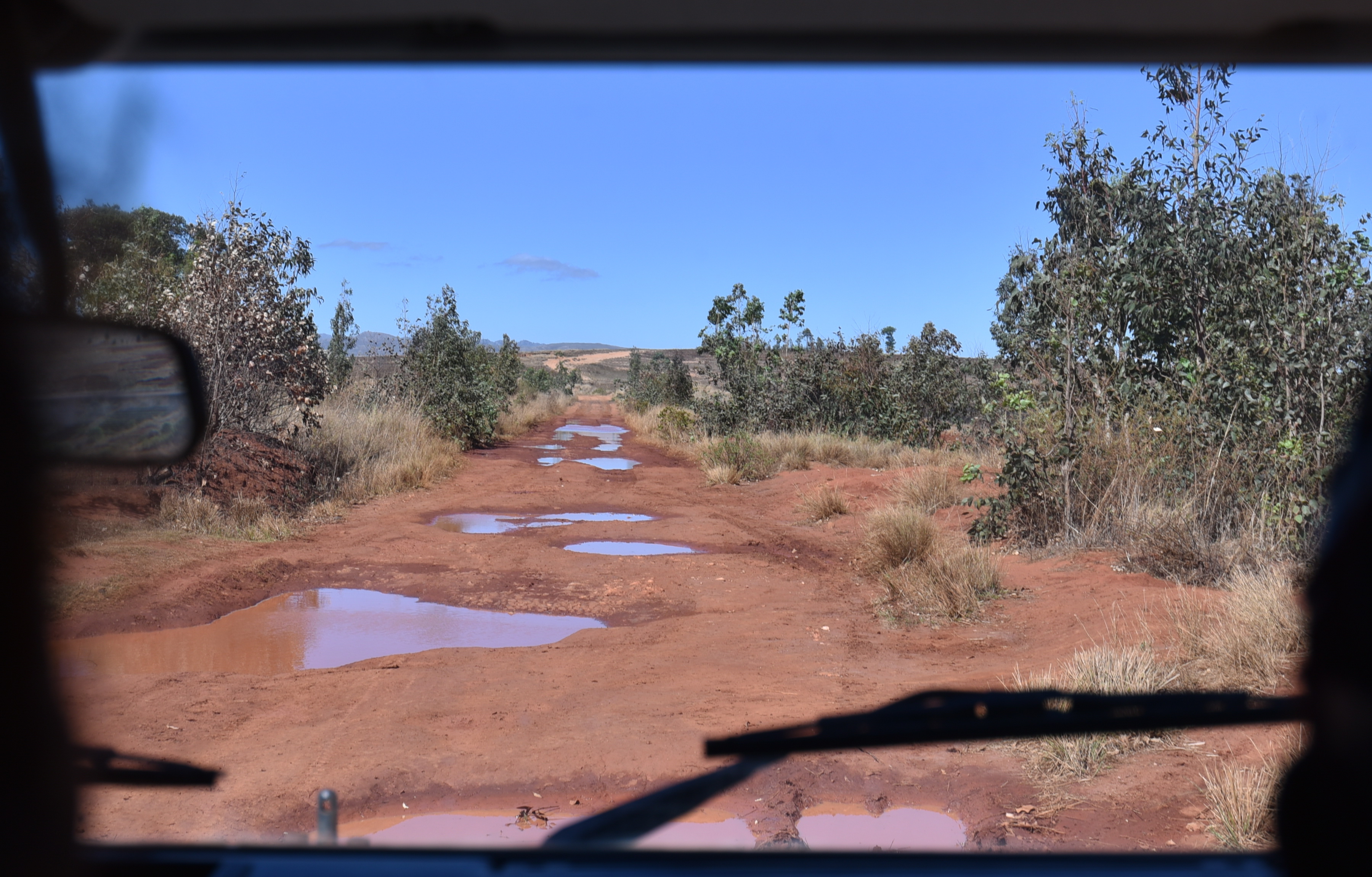 There had been some rain a few days earlier and there were still puddles on the track. This was the start of the rainy season that could turn the track into an impassable mud pool. Fingers crossed for a dry 48 hours, otherwise we might not get home in time for our flight home. We drove over the mostly gently rolling hills past small forests, rice paddies and burnt fields, always seeing two to three house settlements somewhere in the landscape. The population of the island is increasing at an alarming rate!