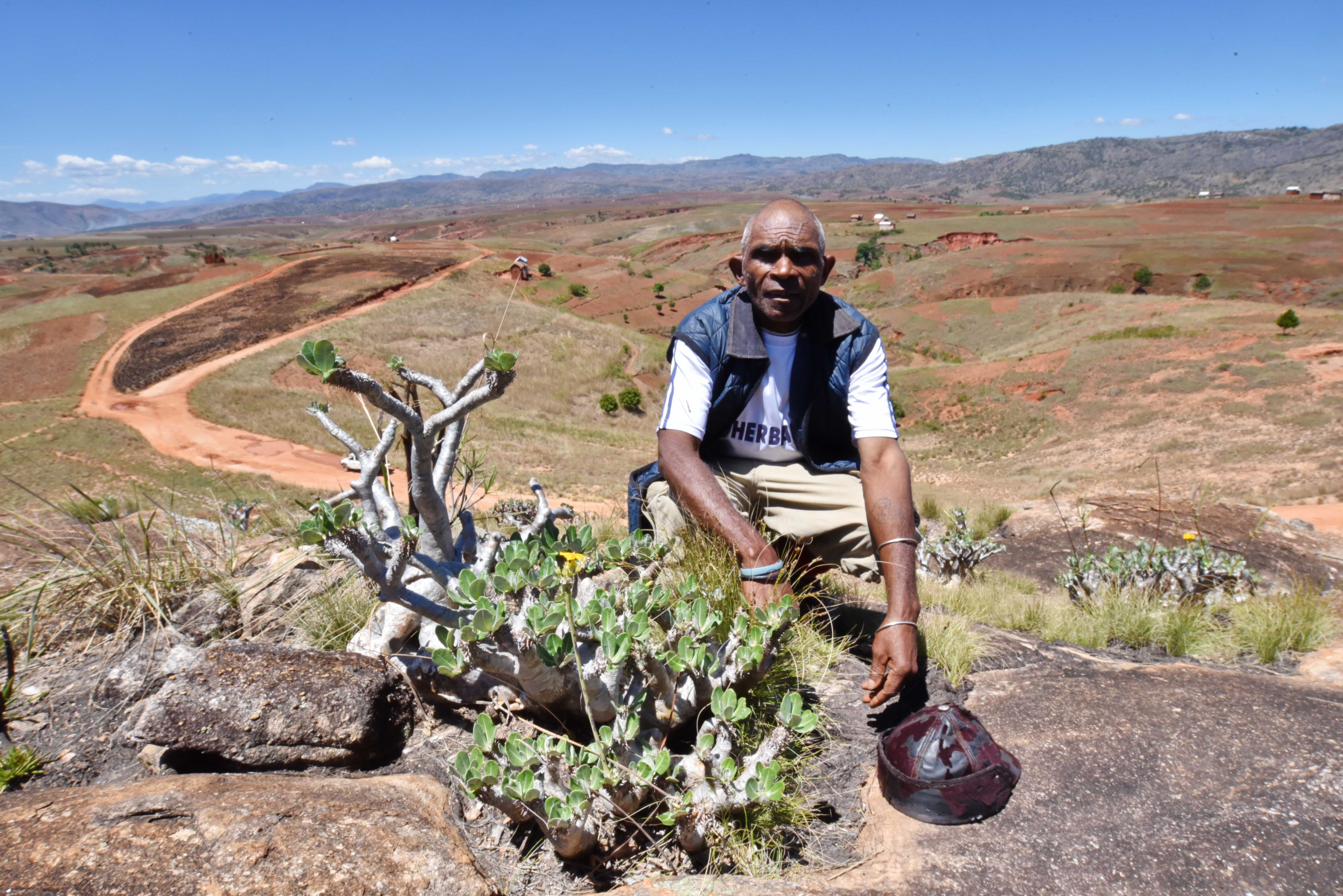 Jean Baptiste on top of a low hill covered in Pachypodium densiflorum
