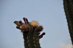 S2308 was a leg stretch to take some pictures of the large ceroids in flower along MEX 70. The flowers were much too high up for me to look into, but I could see insects (mainly bees) flying in and out. So could the small birds (finches?) and the larger bird with a long, turned down bill (bee eater?) that seemed to be feasting on something in the flower. what are these ceroids? we saw them yesterday at Xichu as well. Stenocereus seems to be a candidate.